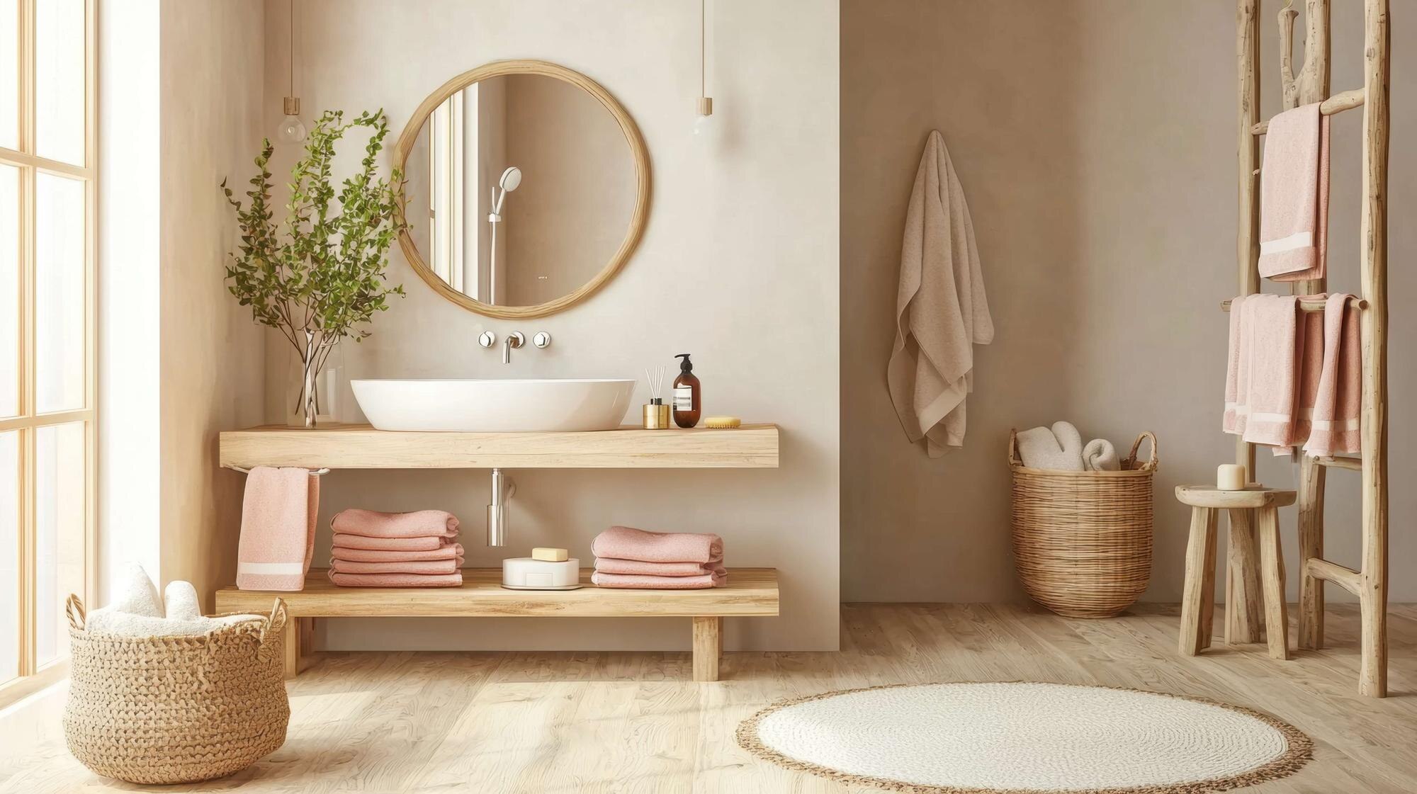 - Természetes textúrák alkalmazása: Cseréljük le a műszálas fürdőszobaszőnyegeket organikus pamutból vagy lenből készült darabokra. A durvább szövésű törölközők nemcsak jobban mutatnak, de a bőrnek is természetesebb érzetet nyújtanak.